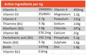 Vitalyte aids in compensation for Vitamin deficiencies commonly caused by a high grain energy dense diet and aids is reducing dehydration cramping and muscle fatigue, which can lead to poor performance and a delay in recovery.